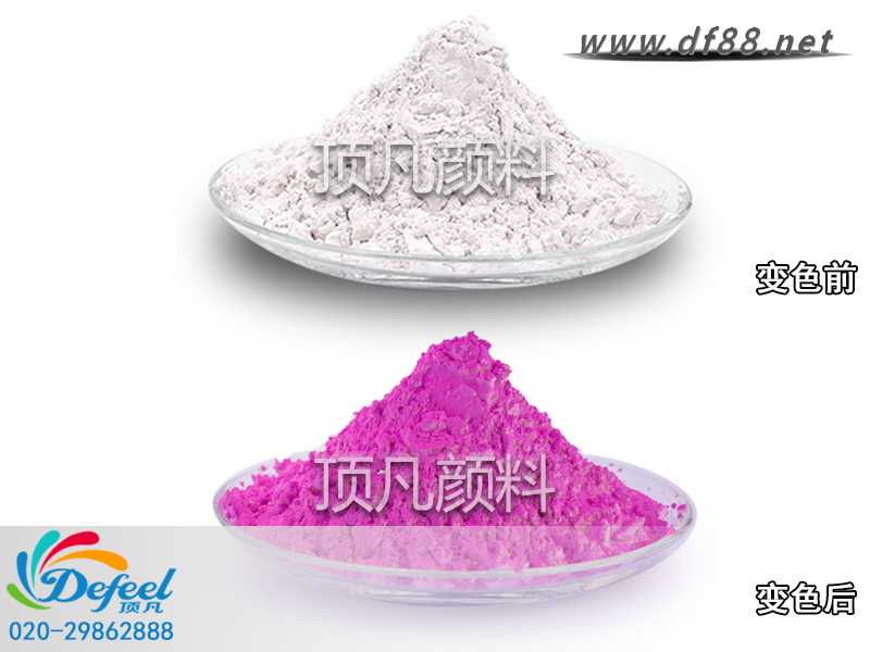 光变粉所制成的产品在无紫外光源的环境下为无色(或该产品本色),在有紫外光源的环境下为变色(或该产品本色与光变色的混合色)。顶凡光变粉的设计大多以室内(无紫外光环境)与室外(有紫外光环境)有颜色变化未需求。